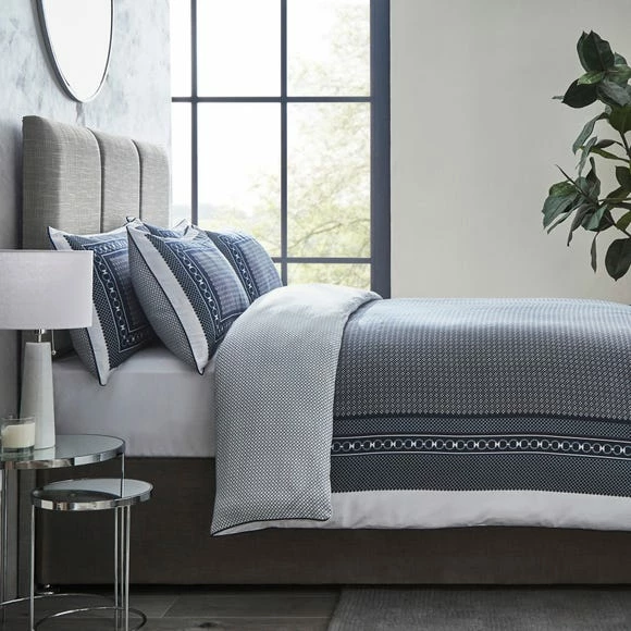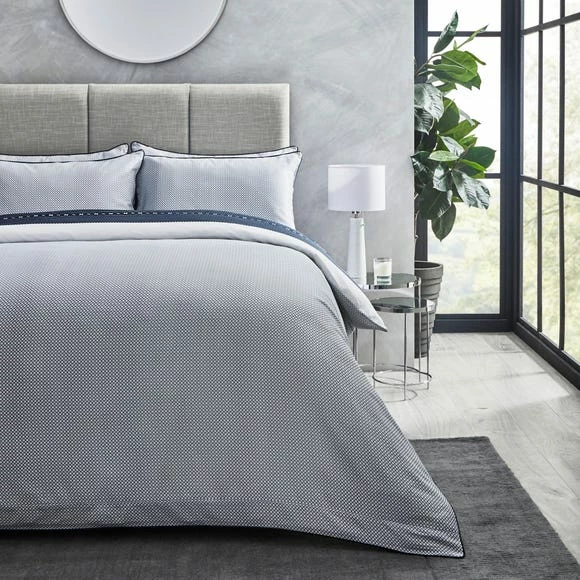 Fashioning stylish micro-geometric patterns in shades of navy and blue, Abbotswood will make a grand bedroom statement piece. Crafted from 100% cotton, with a quality 300 thread count, this luxury duvet cover and pillowcase set offers natural softness and breathable properties and is finished with stunning piped edges and a zip fastening. Complete with a 10 year guarantee, Abbotswood will offer you an effortless night’s sleep for years to come.