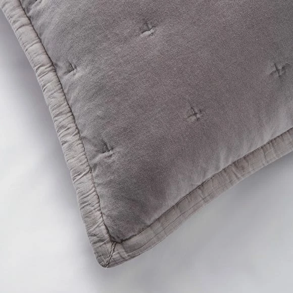 Designed with stone washed velvet, the Dorma Adeena continental pillowcase has been beautifully crafted from 100% cotton with recycled polyester wadding. Indulge in the luxuriously soft pillowcase which has been finished with a elegant oxford edging in a contemporary grey colourway. Available in a variety of colours and a coordinating bedspread.