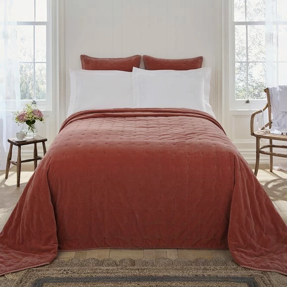Designed with stone washed velvet, the Dorma Adeena bedspread has been beautifully crafted from 100% cotton with recycled polyester wadding. Using a rich terracotta colourway, the bedspread is luxuriously soft and has been finished with a high quality 166 thread count. Available in a variety of colours and a coordinating continental pillowcase.