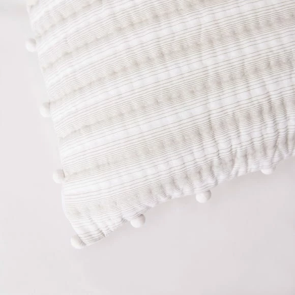 Boasting a dainty spot design combined with a delicate stripe, this fully reversible designed pillowcase, printed on super soft cotton fabric, featuring hand stitched quilting and bobble trim styling is the perfect accessory to layer with the Coddington bedding or simple plain sheets. A matching cushion & bedspreads are also available.