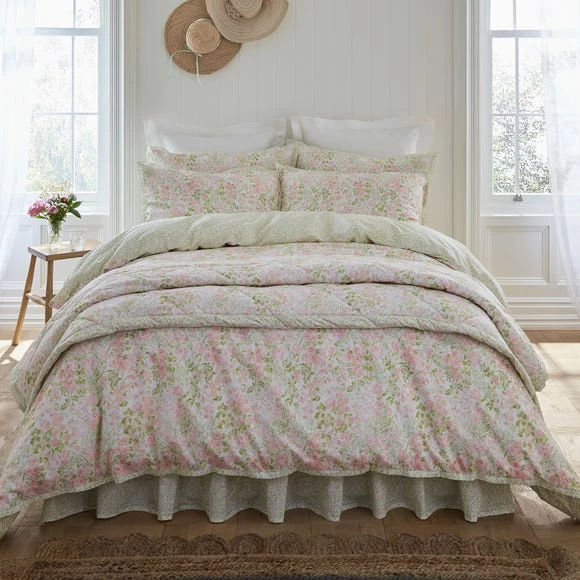 Hand-painted flowers flourish across this archive-inspired design with a ditsy leaf reverse and contrasting Oxford edge. All crafted in sumptuous 300 thread count, 100% cotton percale which provides long-lasting luxury. Easily remove the duvet with the zipper fastening. Coordinating pillowcase pair, curtains, valance and bedspread available.