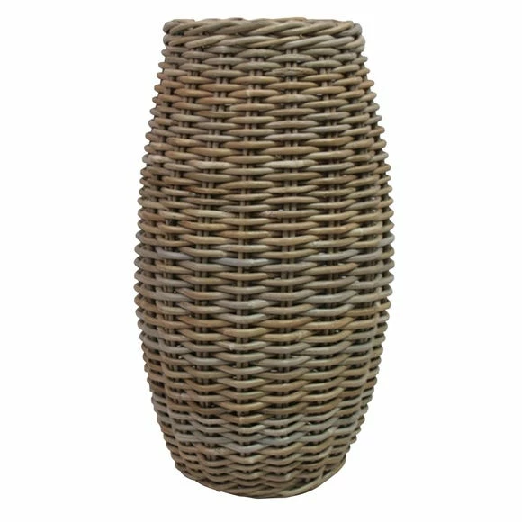 Designed in a striking oval shape, this woven grey Dorma vase is hand-crafted from 100% natural rattan kobo.