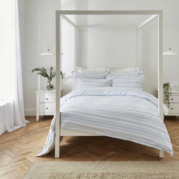 Dorma Holkham has light and fresh feel with a hint of breezy coastal calm. Our nautical inspired stripes are woven in 100% cotton and feature a textured finish for added tactile comfort. The quality is unrivalled thanks to the luxuriously soft 300 thread count cotton. A coordinating pillowcase pair available to complete the Holkham look.