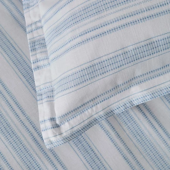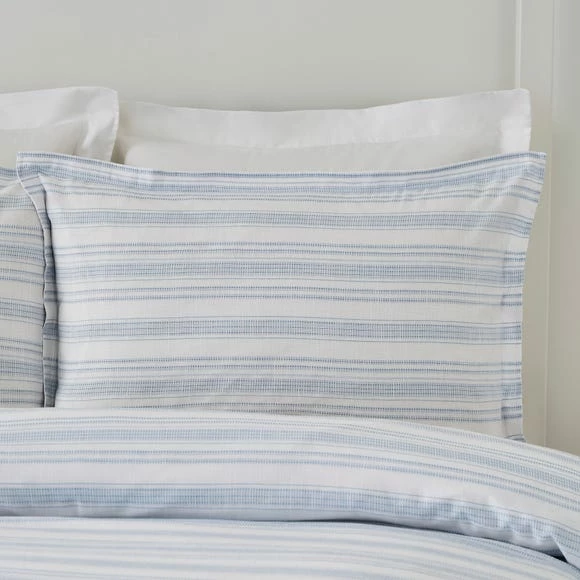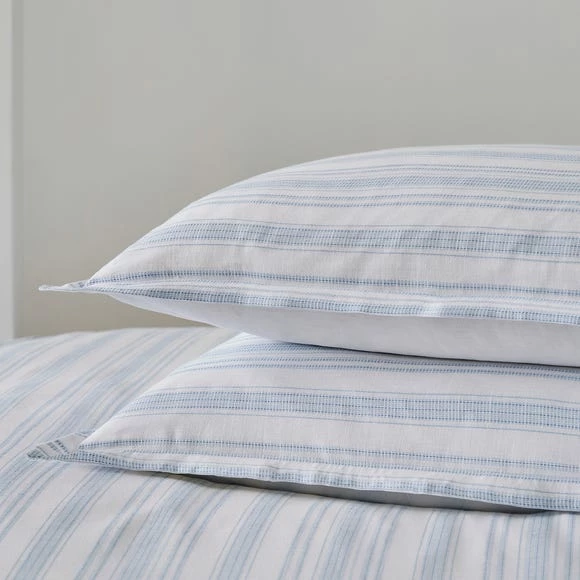 Boasting a light and breezy feel with a hint of breezy coastal, nautical inspired stripes have been woven into a 100% cotton material. Complete with an oxford edge and a textured finish, the oxford pillowcase pair has added tactile comfort and is luxuriously soft. A 300 thread count provides the set with the univalled Dorma quality. Complete the Holkham look with he coordinating duvet cover set that is available.