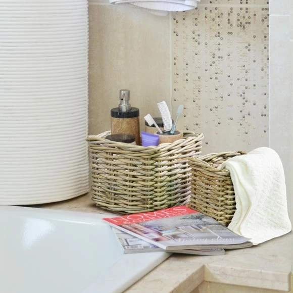 Beautifully handcrafted from 100% natural rattan kobo, this Dorma basket is ideal for storing your bathroom toiletries and is easy to clean using only a dry cloth. Available in two different sizes.