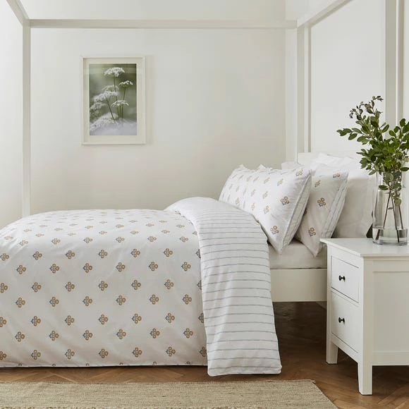 A fresh and soothing nautical meets Scandi design that takes pattern inspiration from Indian woodblock designs. Crafted from 300 thread count, 100% cotton, the duvet cover and pillowcase set is finished with with a neat piped edge. Easily swap the style to a rustic, stately striped reverse. A coordinating oxford pillowcase pair is available to help complete the indulgent look.