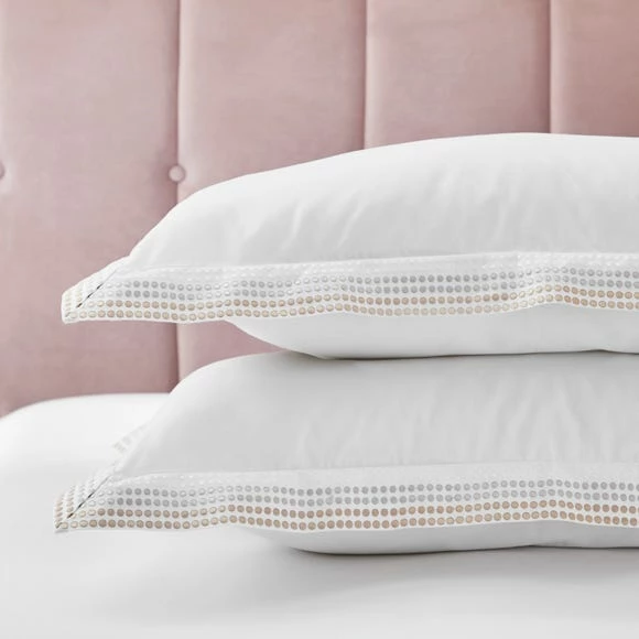 Featuring smart rows of ombre embroidered dots, this easy to care for 300 thread count cotton sateen pillowcase, is perfect for adding an elegant and timeless touch to your bedding. Finished with Oxford edge styling, this pillowcase brings a refined contemporary feel to your bedroom. Made from 100% cotton, this pillowcase is soft, comfortable, and machine washable. A matching duvet cover and pillowcase set is also available.
